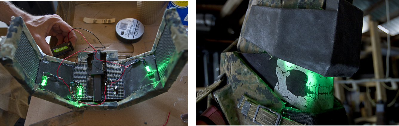 Craig smith helped wire up some practical lights to give the visor a classic night vision look.