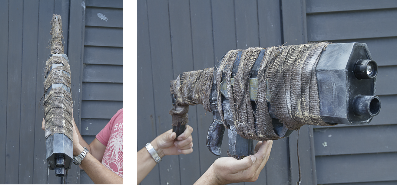 We opted to use nerf guns as a base structure for the guns, then re work some of the elements and dirty them up. This wasn't my ideal choice but the fastest one.